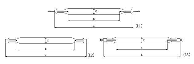 | 序號(hào) | 圖號(hào) | 功率 | 工件電壓(V) | 工作電流(A) | 全長A | 極距B | 管徑C | 功率密度(W/mm) | 備注 |